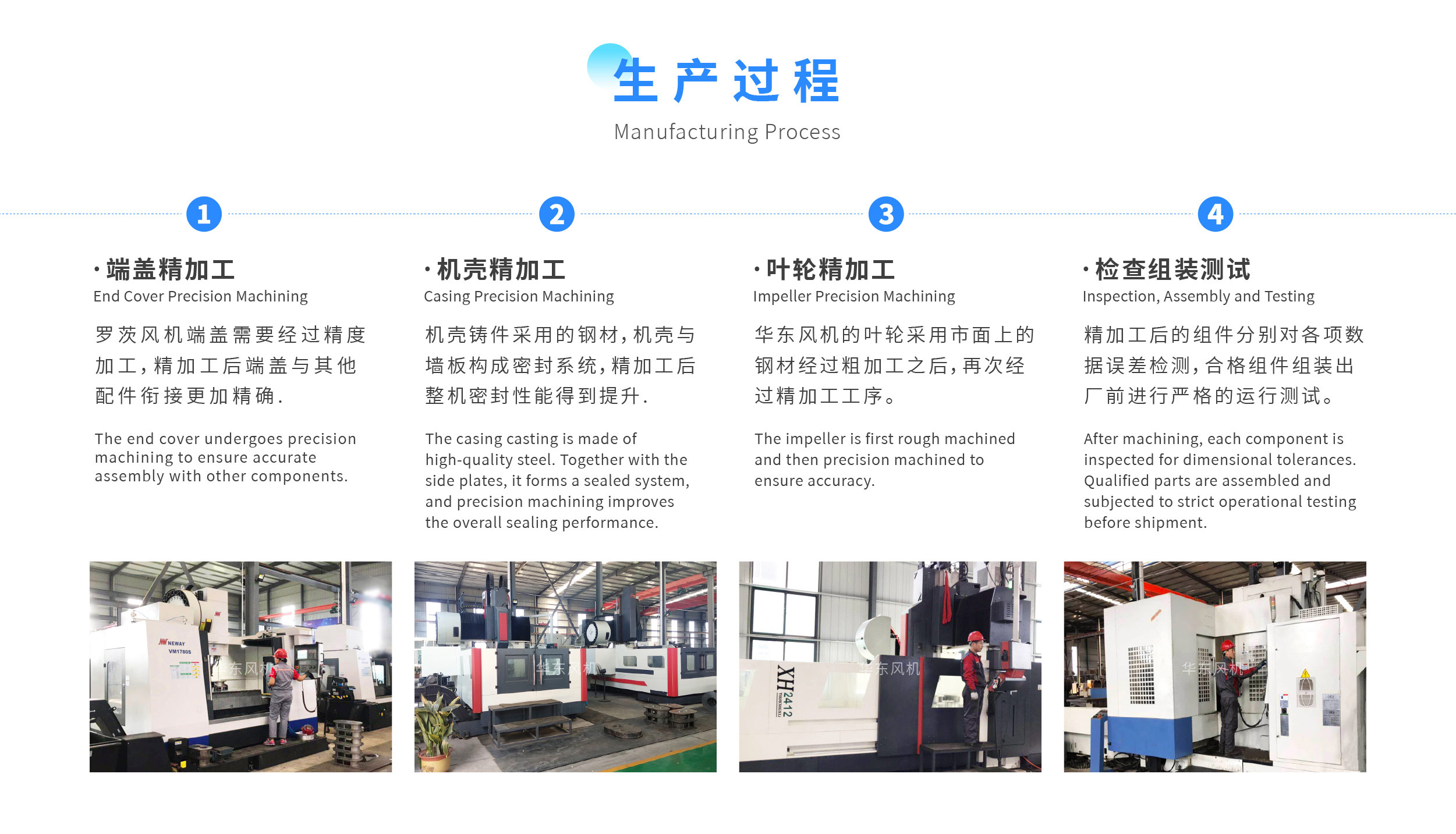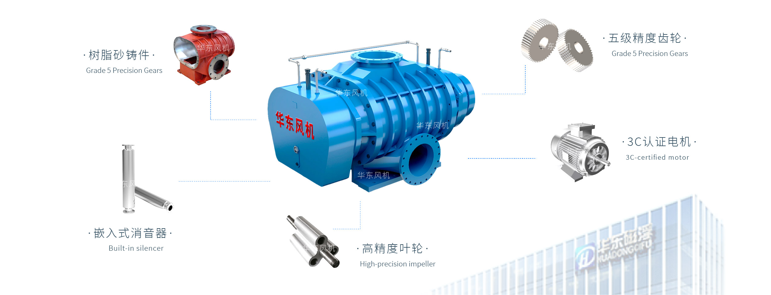 主要配件(机壳、端盖、轴、叶轮)全程采用数控加工中心制作完成,主要外购采用NSK,FAG轴承,株洲齿轮,美国盖茨皮带,台湾TTO橡胶油封,提高了风机效率降低了噪音,将风机的使用寿命延长至10年以上!