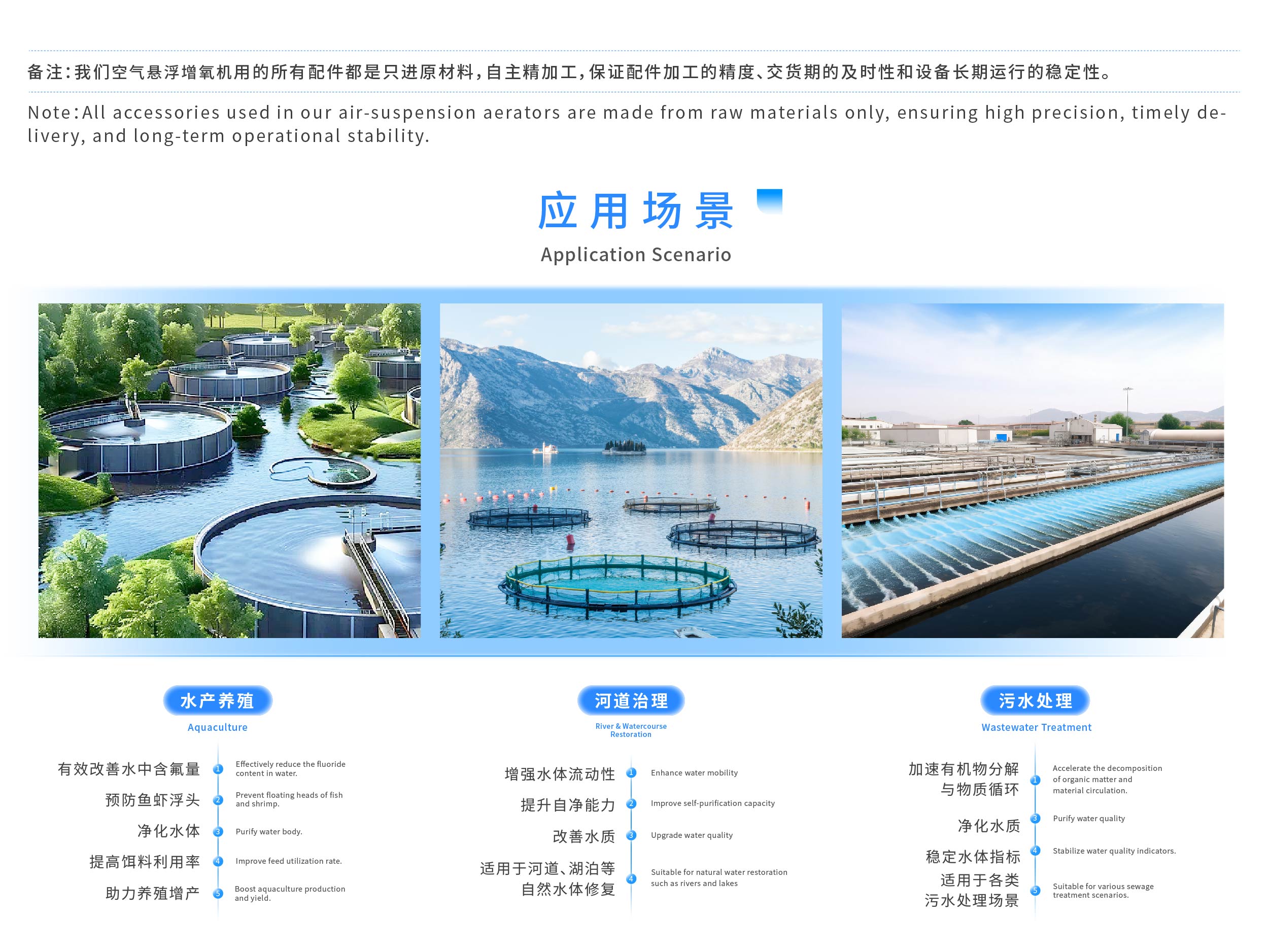 Air Suspension Aerator features rapid oxygenation, accelerated water circulation, improved ecological environment, enhanced growth, and high yield with increased income. It helps you easily solve fish pond problems and supports efficient aquaculture production. Based on user needs, it achieves comprehensive management goals through remote monitoring of bound aerators, settings management, fault alarms, and record analysis.