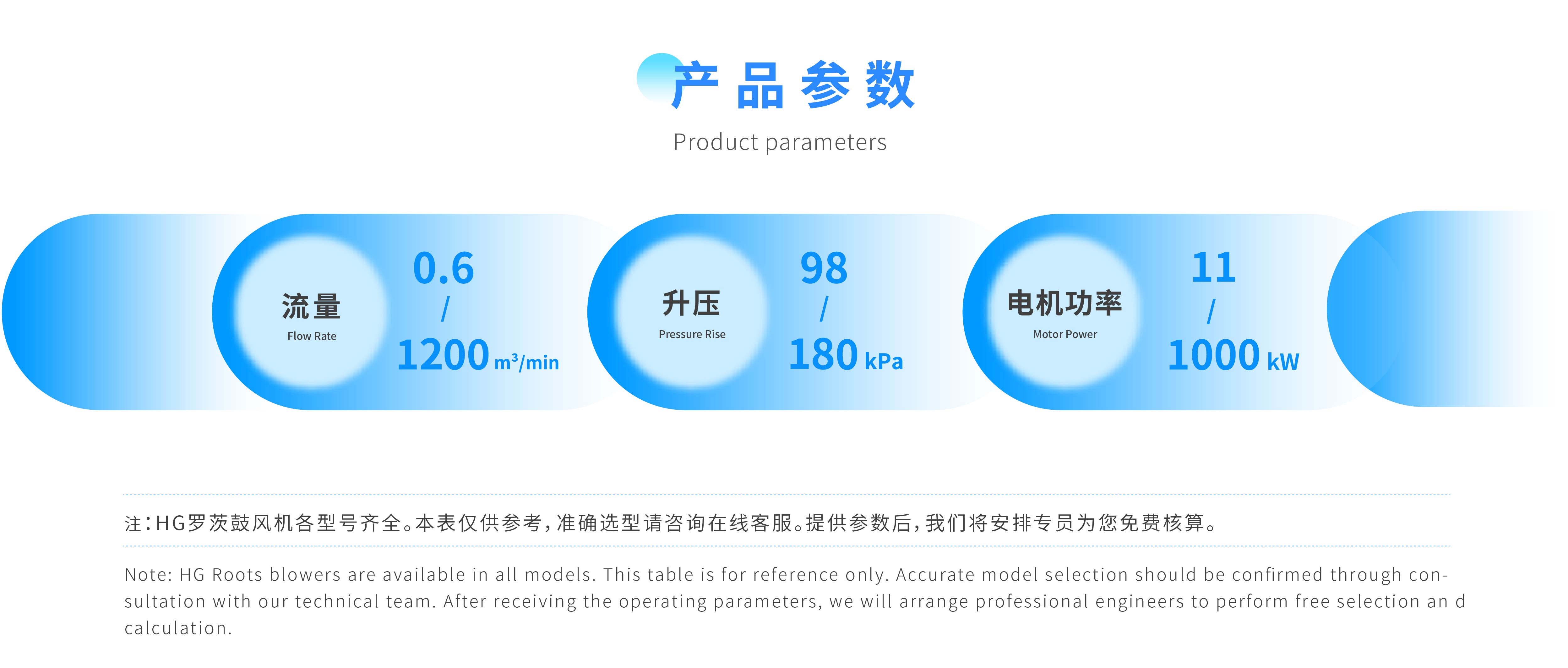 双级串联罗茨风机叶轮采用渐开线型线,先进合理,整机效率高、材质优、寿命长、噪音低。采用强制润滑,升压高、转子平衡精度高、振动小、长期运行安全可靠。主要零部件采用数控设备加工,齿轮采用5级精度,产品精度高,运行可靠。机壳、墙板采用中分结构,检修方便,结构紧凑,体积小、重量轻、使用维护方便。
